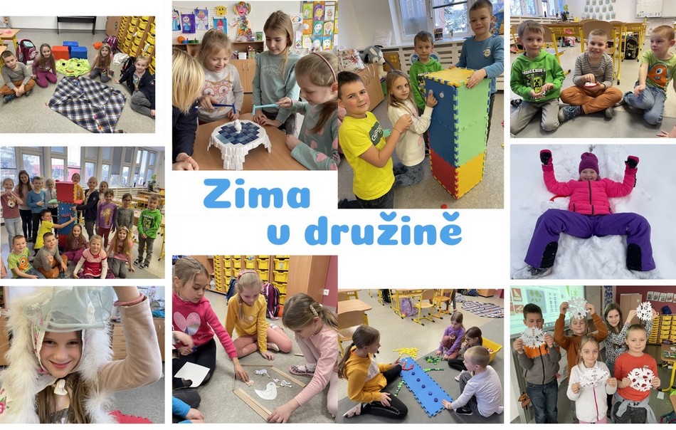Poté přišla sněhová nadílka a my jsme si užívali pravou zimu. Hráli jsme si se sněhem, sáňkovali a bobovali jsme na kopci u přehrady. Také jsme si zahráli na krasobruslaře, rychlobruslaře, vyzkoušeli jsme si hru curling a učili jsme se zavazovat tkaničku na bruslařské botě. Ve třídě jsme si rovněž v týmech postavili sněhuláky s vyžitím netradičních materiálů. A že jsou děti nápadité, o tom se můžete přesvědčit z fotogalerie. Ve třídě jsme dělali pokusy se sněhem, vyrobili jsme si zimní výzdobu družiny a také jsme mysleli na ptáčky v zimě, kterým jsme vyrobili krmítka.