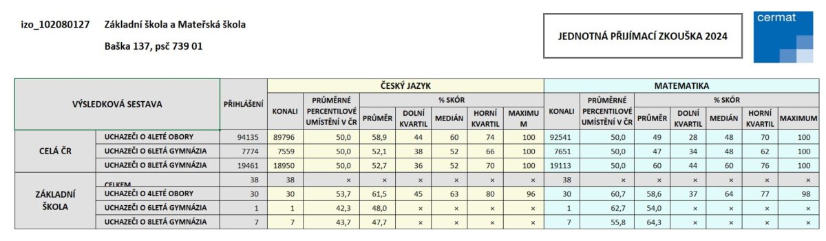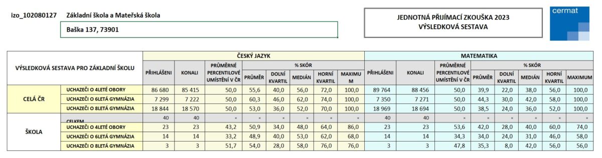 • výsledky přijímacích zkoušek na střední školy